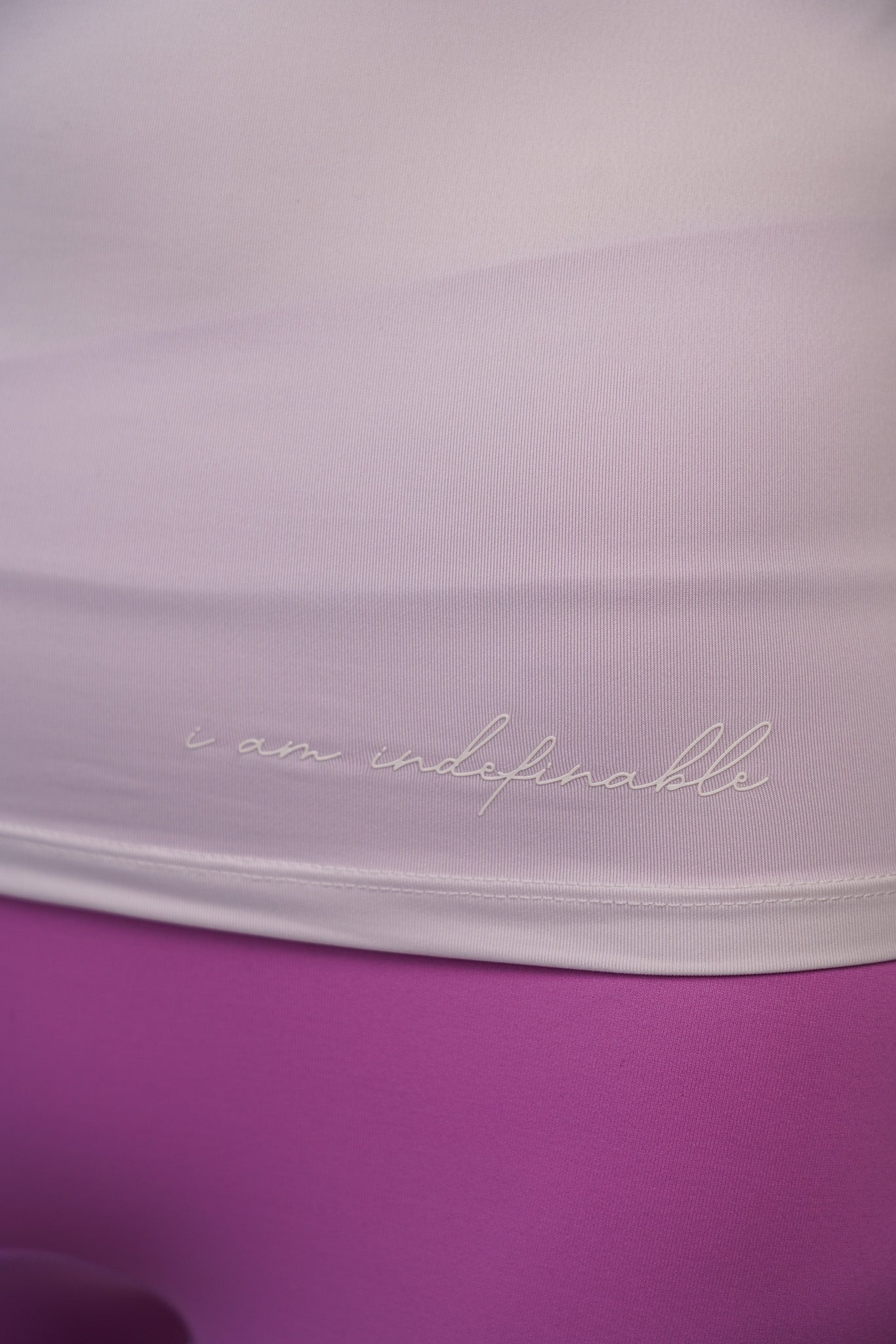 The perfect fitted-t for layering over sports bras to cover up, but not overheat. Short sleeve, medium-long in length for full coverage (or a simple fold/tuck to crop it - the material is light weight, so doesn't get bulky) and features our reminder 'I am Indefinable'.